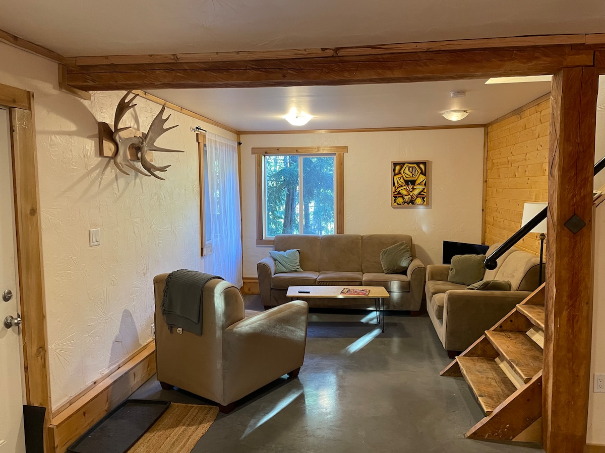Come and enjoy a fresh, spacious, immaculate haven in beautiful Kaslo, BC. Our suite overlooks the beautiful Purcell mountain range and is surrounded by forest. We are located in upper Kaslo, a short walk to trails along the river and a 15 minute walk to the village and the lake (or a 30 second drive! ) This cottage is a place to relax, take in the mountain air, and explore what Kaslo has to offer. Pet Friendly! There is a suite downstairs that is also a nightly rental.