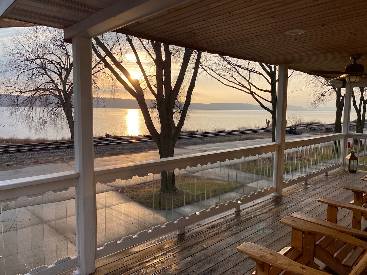 Villa Serra is located in beautiful Pepin, Wisconsin. This unique 3 bedroom 2 full bath home boasts panoramic views of Lake Pepin. The open floor plan features a spacious living room with adjoining kitchen and breakfast bar island. The dining area leaded to an elevated open porch and deck with expansive views. Stroll through the hillside gardens and relax on the deck overlooking the lake - a perfect setting for gathering, enjoying the gas BBQ and dining al fresco. The perfect Lake Pepin retreat!