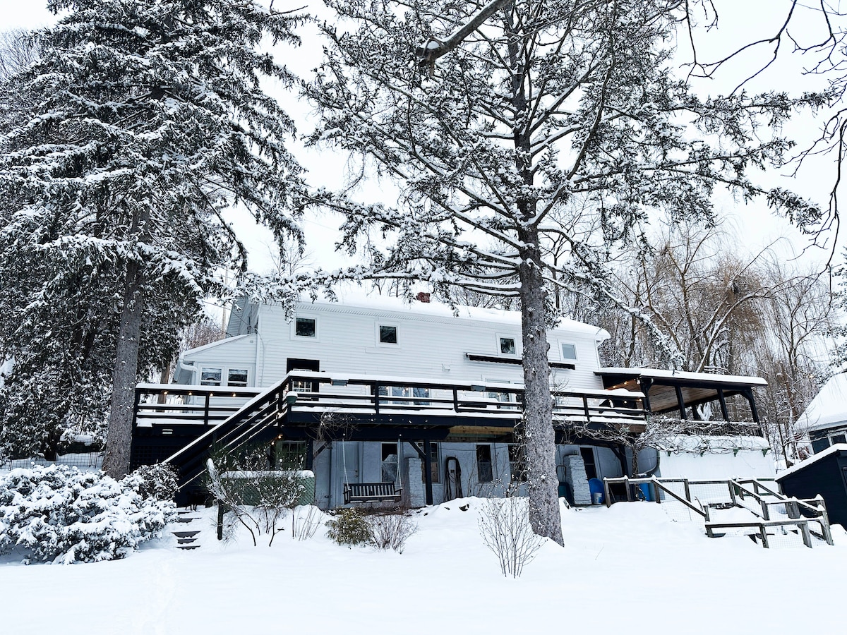 Tere tulemast veeäärsesse sadamasse! Nii rahulik, kuid vaid miili kaugusel Saugerties 'i kesklinnast. Sulle meeldib see avatud kontseptsioon, kolm magamistuba, kaks täisvannituba, kus on aastaringselt välimullivann! Uju, süstaga sõitmine, aerulaud, kala, lõõgastumine, grillimine - kõik sinu hiiglaslikust esiküljest. Privaatne, rahulik, vaikne tupiktänaval. Matkamine, lehestik, suusatamine, poed ja kõik, mida Catskills pakub. Maja on pere- ja koerasõbralik. Vaata meie sotsiaalmeediat Insta @esopuscreekhouse