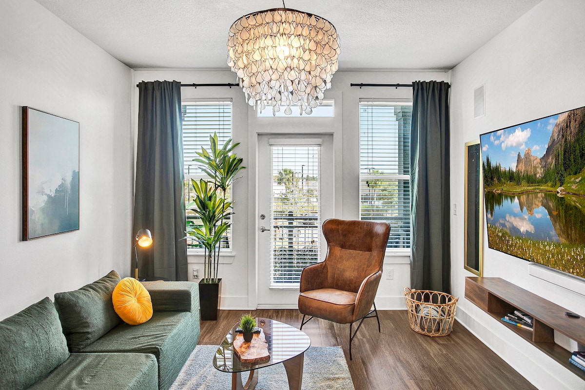 Experience relaxed luxury in this spacious 4BR retreat featuring a private solar-heated pool, elegant British-inspired décor, and soaring 10-ft ceilings. Designed for comfort and style, the home offers both refined touches and the space families need to unwind. Enjoy smart TVs in every room, fast Wi-Fi, a fenced backyard, hammock lounge, and poolside grill. Perfect for elevated escapes or family getaways. Pool is solar-heated; temperature varies with weather and may be cooler in colder months.
