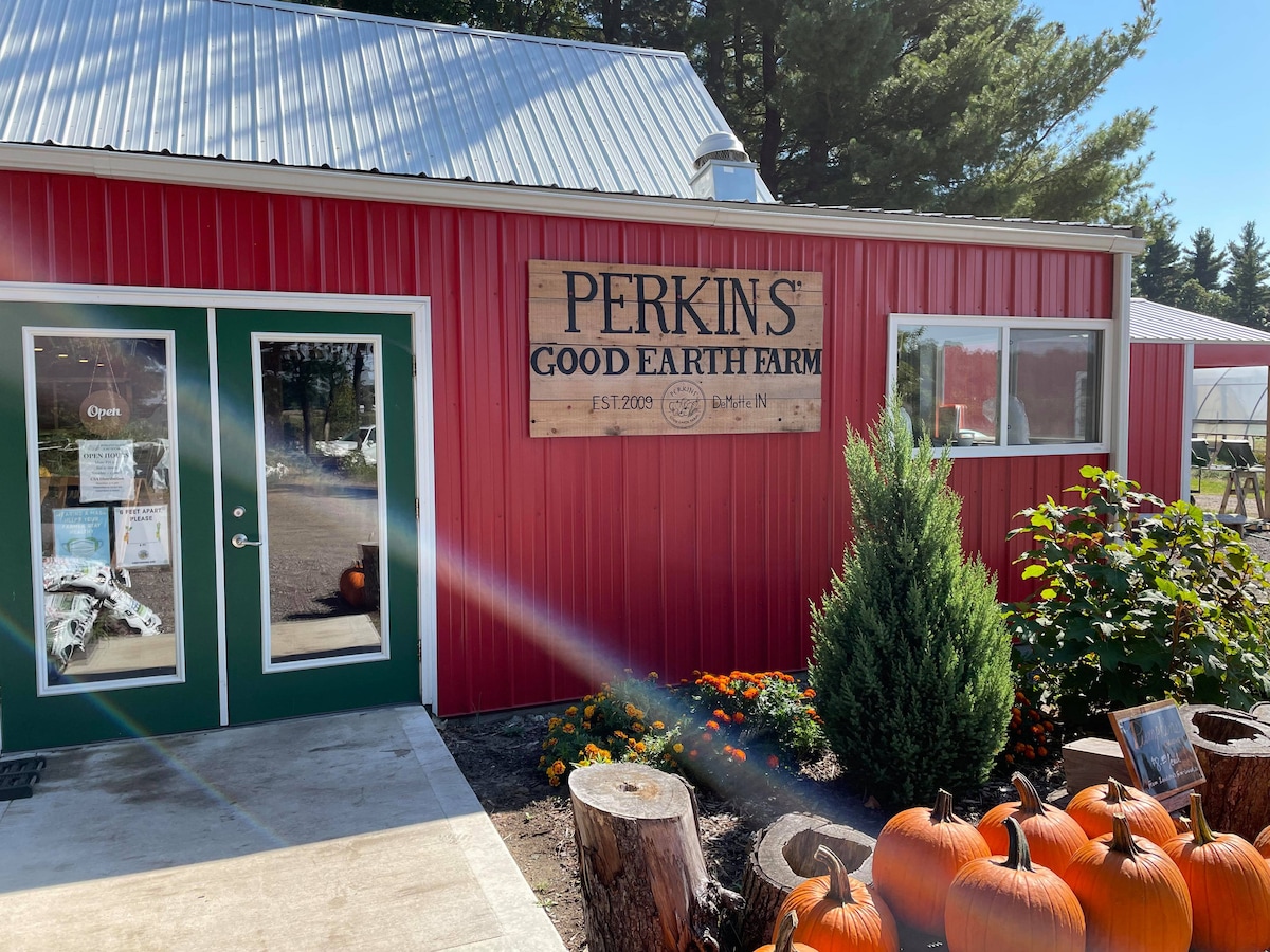 Leia Perkinsi Good Earth Farmis selles ilusas küünipööningus rahu ja restaureerimist. Loftis on magamistuba, eraldi duširuumid ja tualettruumid, töökoht, elutuba, köögiruum ja kütte-/jahutussüsteem. Meie talupoe kohal asuv loft pakub sulle privaatsust, pakkudes samal ajal juurdepääsu värsketele puu- ja köögiviljadele, kohalikule lihale, omatehtud suppidele ja salatitele meie taluköögist ning palju muud. Võid jalutada ka meie talurada, köögivilju külastada või lõket nautida.