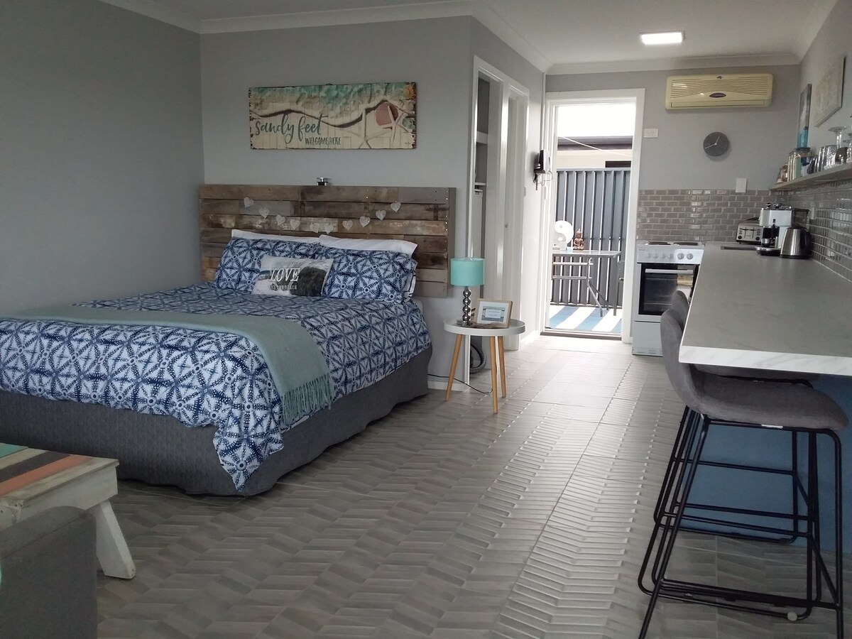 Hubane rannaäärne puhkekoht. Meie äsja renoveeritud stuudiokorter asub vaid mõne sammu kaugusel ookeanist. Värskes rannikuäärses stiilis kaunistatud kutsuv puhkusereis sobib ideaalselt paaridele või vahepeatuseks sinu teekonnal läbi edelas. Kõigist akendest avanevate ookeanivaadetega saad lõõgastuda Marri pingil joogiga ja vaadata päikeseloojangut üle ookeani. Naudi tasuta hommikusööki teravilja, leiva ja munadega. Rannarätikud on olemas ning sisehoovis on grill ja mugavad istekohad.