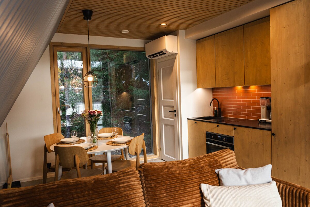 See uus (10/2025) kolmnurkne maamaja asub väikese järve kaldal vaid 20-minutilise autosõidu kaugusel Tampere kesklinnast, kuid suure metsaga kaetud krundi keskel tundub, nagu oleksid keset metsikut loodust. Ärka üles laulvate lindude peale, naudi hommikukohvi sadamas ja vaata, kuidas udu veest tõuseb. Mine lähedalasuvasse loodusparki matkama või mägirattaga sõitma või proovi kalapüüki. Õhtusaun, mullivann, kamin ja tähistaevas kroonivad päeva.
