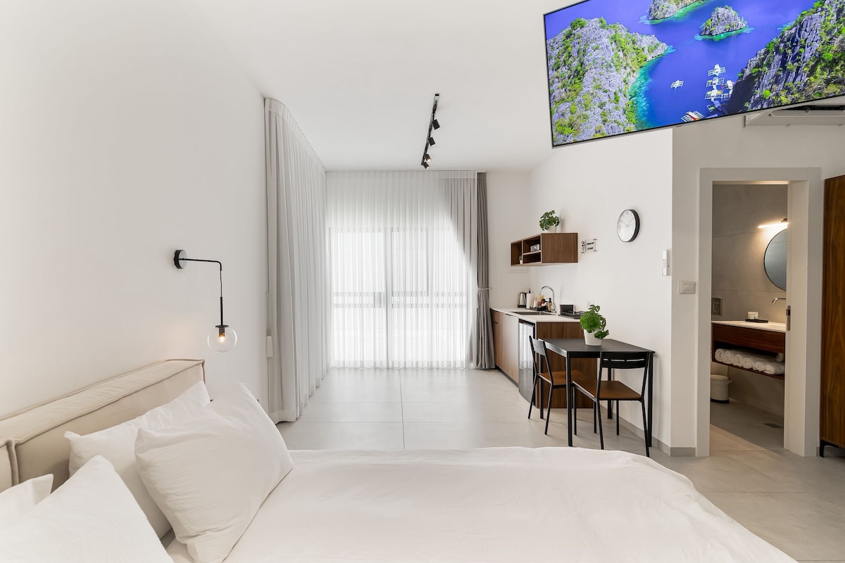 Ilus, hubane ja valgusküllane korter Hadari naabruskonna vaikses osas. Ventileeritud magamistuba ja elutuba väljapääsuga rabavale rõdule Uued kliimaseadmed ja merevaade kõigist tubadest. Köök on täielikult varustatud ja seal on väljapääs teisele rõdule. Eraldi tualett ja dušš, luksuslik vann suurepärase vooluga, kiire internet, tasuta parkimine tänaval, suurepärane ühistransport ja toidupood maja all. Armas 1 magamistoaga korter suurepärase vaatega ookeanile ja palju õhku, valgust, rahu ja vaikust. Suur magamistuba ja hubane elutuba, täielikult varustatud köök, vann, tugev AC&internet, tasuta parkimine