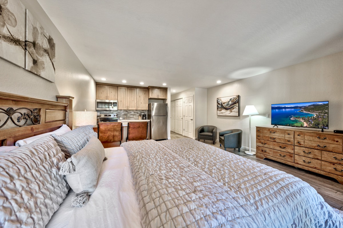 Part of the Marriott resort with all amenities. Centrally located, walk to Heavenly gondola, the Casino corridor, Heavenly village shops and restaurants, only blocks from the beach. Use the full kitchen to make meals at home or walk out the door to a range of food and entertainment options. There is even a gym, a pool and a hot tub. A cozy, well maintained and clean studio. Please make sure you read other things to note and house rules too please before booking, credit card and id required.