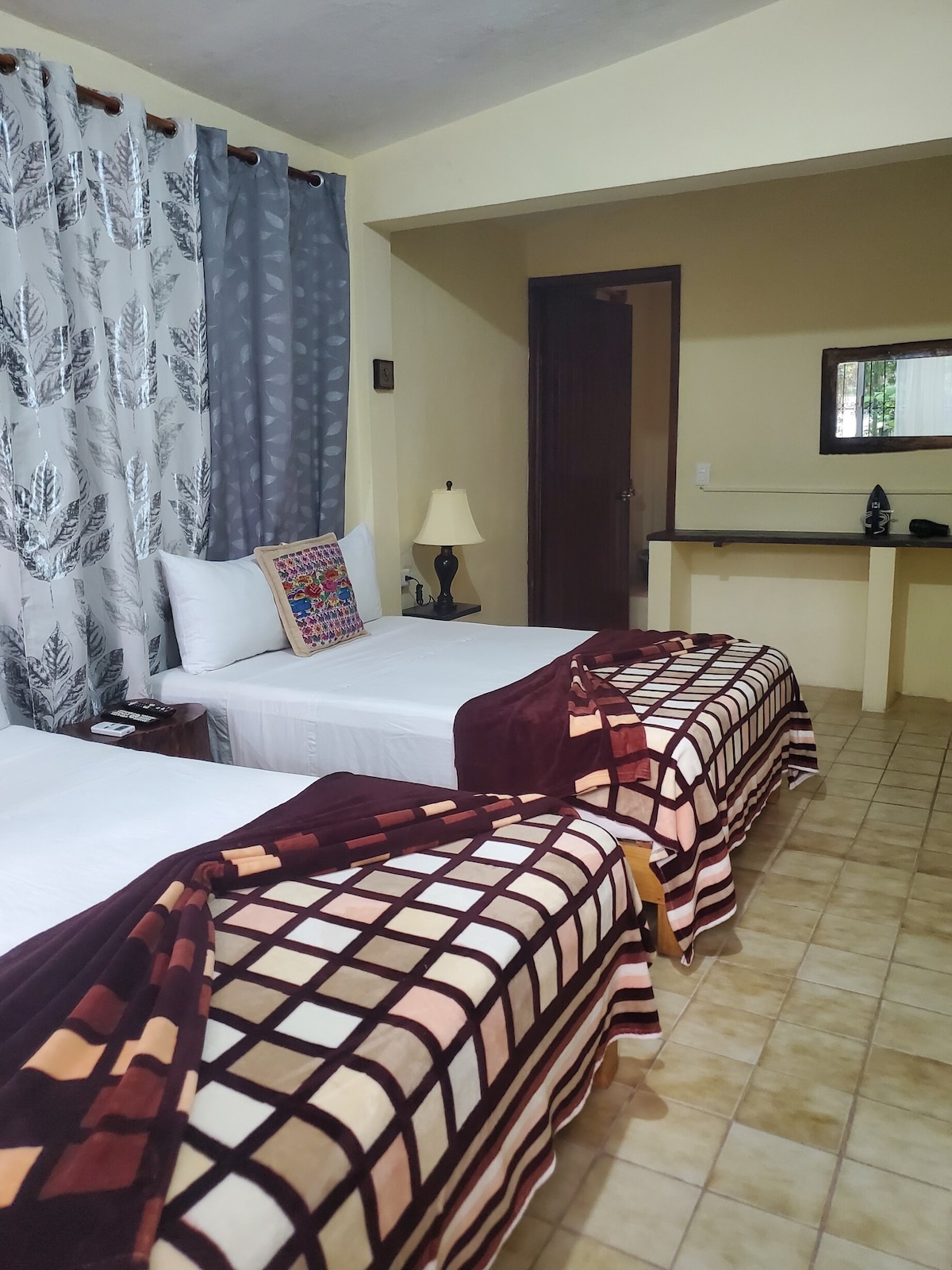 Es un departamento amplio, privado con Aire Acondicionado y una cómoda cama Kingsize perfecta para relajarse y descansar, se encuentra en una perfecta ubicación de la mejor zona de palenque "La Cañada", rodeado de grandes árboles. A tan sólo 5 min. caminando se encuentra la Estación de Autobuses y a 12 min. el Parque Central. - AE. internacional y Tren Maya a 12 min. en coche. - Zona Arqueológica a 18 min en colectivo. - Parada de colectivos a 5 min. caminando.