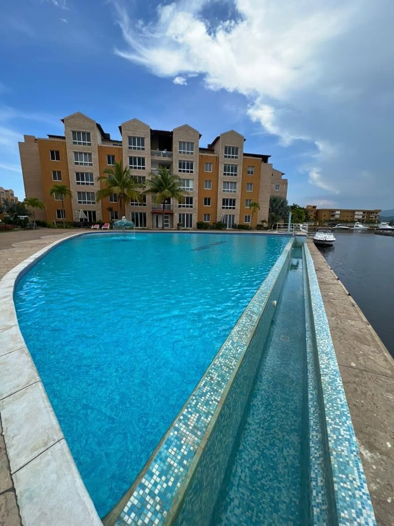 Fascinante y exclusivo condominio en canales navegables. A un paso del hotel Maremares, frente al campo de golf, cercano a marina Américo Vespucio, y Marea Beach Club en playa Los Canales. Rodeado de restaurantes y tiendas, especial para vacacionar en Complejo Turístico El Morro. Bien cuidada, 2 habitaciones/2 baños, 72 m2 , elegante cocina, salón integrado, una barra sirve de comedor y una terraza con vista a la marina. NO TENEMOS SECADORA DISPONIBLE. Plan "FIBRA HOME" 400Mbps Tecnonet.