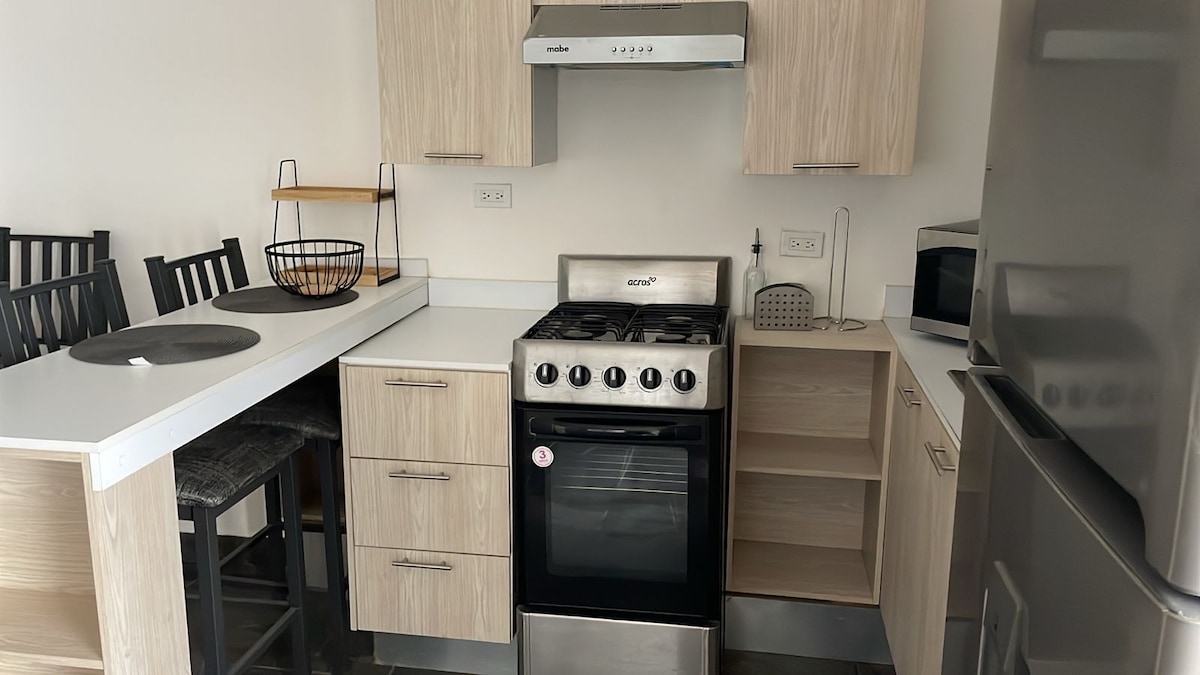 Este mini departamento ha sido diseñado para ofrecer confort, privacidad y estilo en un espacio moderno y funcional. Ideal para parejas o estancias ejecutivas, cuenta con acabados contemporáneos, ambiente tranquilo y todo lo necesario para una estancia cómoda y sin complicaciones.