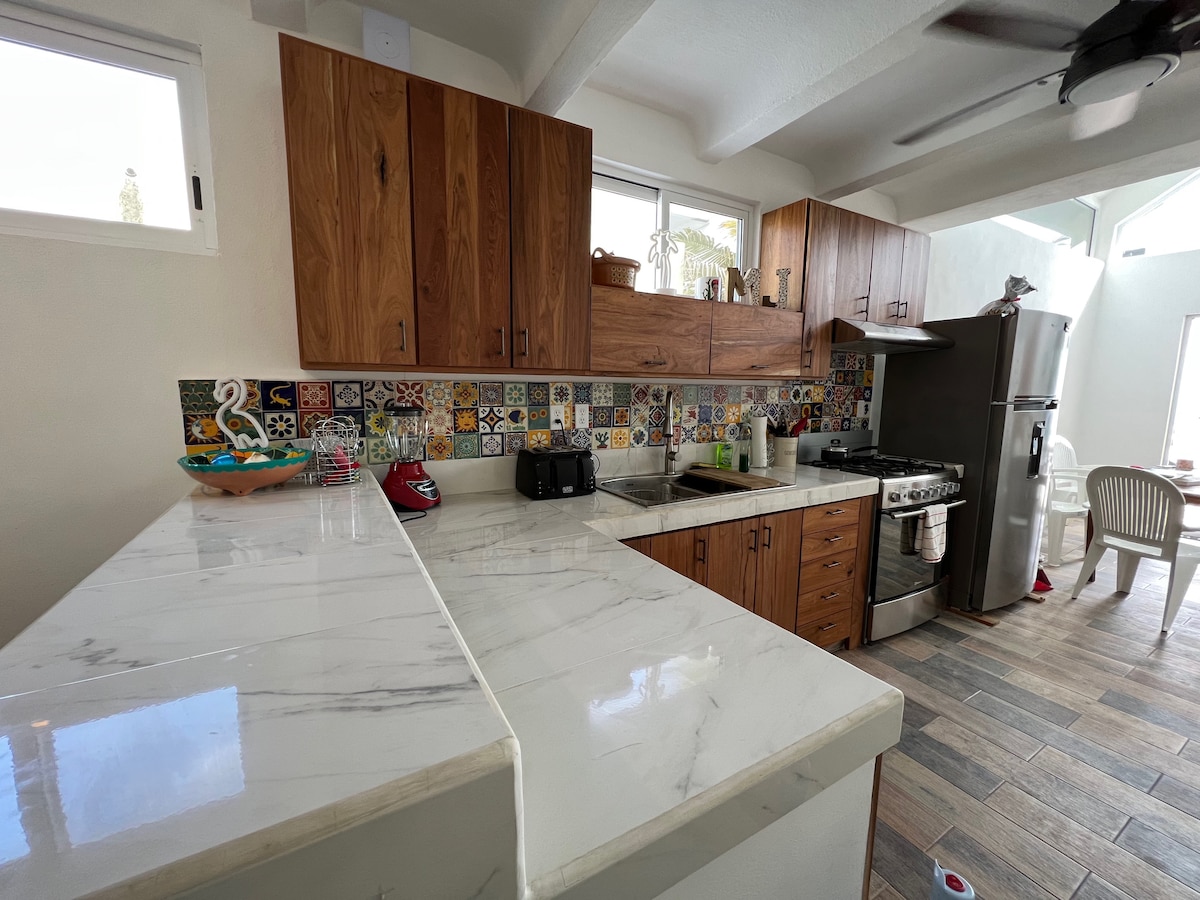 Anchor Mahahual esitleb Casa Azulit Korter Maleconil (Boardwalk) linnas, ideaalne peredele ja paaridele, kes reisivad koos. Ujumisbassein!! Teise korruse üksus. Selles on 3 magamistuba, sealhulgas narituba lastele või väiksematele täiskasvanutele, 2 vannituba, köök, gaasipliit, mikrolaineahi, külmik ja STARLINKI kiire internet. Korter asub maapinnast 2 korrust kõrgemal.