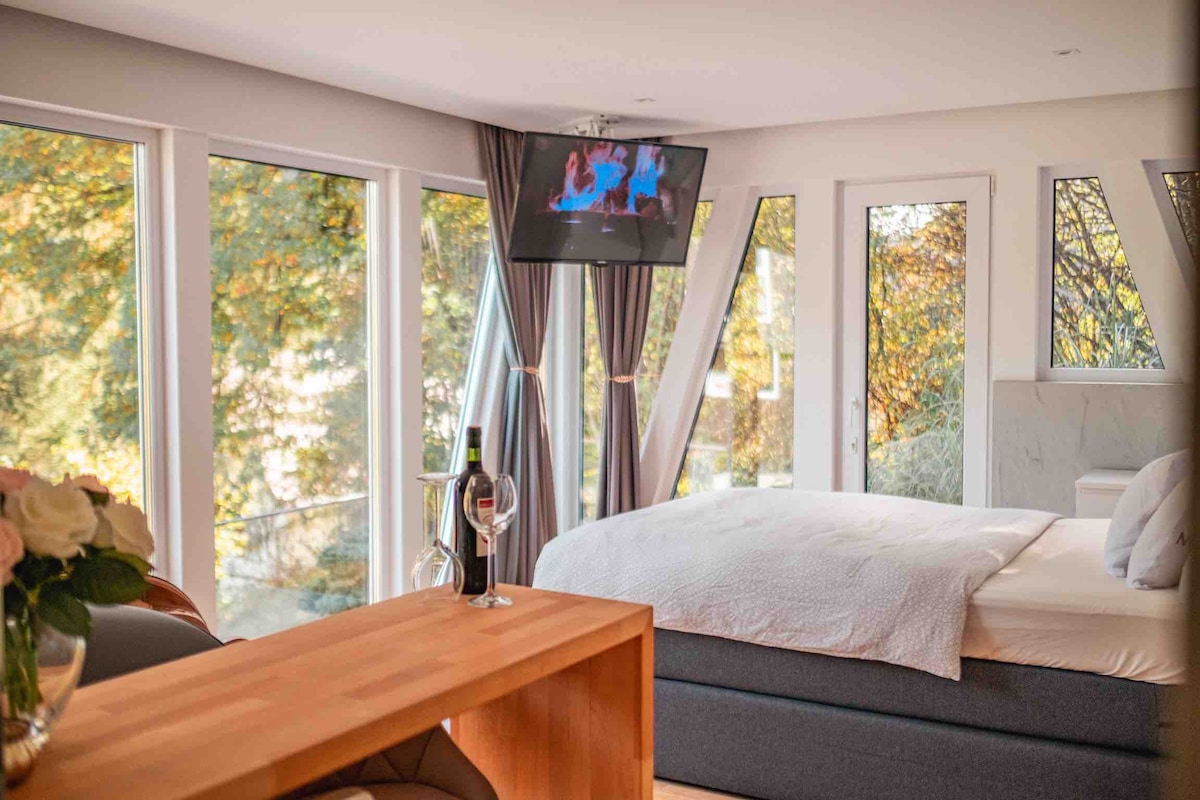 Koge puhast loodust kaunis Schwarzwaldis 🌳 Seda võib oodata: avatud, valgusküllane, täielikult klaasitud akna esikülg, väga avar bangalo magamis- ja saunaruumiga 🧖♀️🧖♂️ Soojendusega kümblustünn ja täielik privaatsus 🫧 Esiletõstetud on ka privaatne kino. 🍿Saadaval on ka Netflixi konto. PILDID ÜTLEVAD MIDAGI ENAMAT KUI SÕNAD, SIIN EI OLE MIDAGI PUUDU, ET END TÄIESTI MUGAVALT TUNDA! Loodan sind peagi näha 🥰 Tania ja Michele 🌳