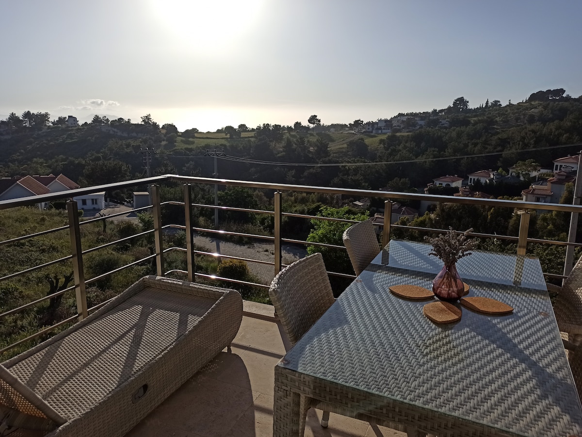 Õlirõõmsate puudega kaetud Tavşantepe seljaga toetatud villa esiküljel on vaade meie basseinile (soolane vesi), spaabasseinile, pähkli- ja õlipuudele ning erinevatele viljapuudele, kus saate nautida rahu, nähes kõiki rohelisi toone. Hommikul saadab teid kuke, kana, ööbiku ja orava hääl ning õhtul pakuvad pääsukesed tantsuga visuaalset pidusöömingut.