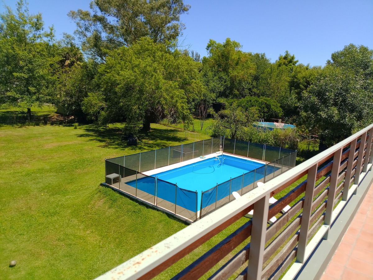 Maaliline kahekorruseline majake Sarandi oja kaldal, suure roheala sees asuva dokiga, basseini ja privaatse grillialaga, mis teeb sellest maamajast rahuliku ja eksklusiivse puhkepaiga. Ligipääsetav autoga; piisavalt privaatset parkimist; grill, saviahi ja lõkkease. Vaid 5 minuti kaugusel Nordelta kaubanduskeskusest. Tule lõõgastu ja suhtle loodusega.
