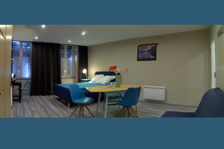 Iseloomulik kahe magamistoaga majutuskoht, kust avaneb vaade Château 'le