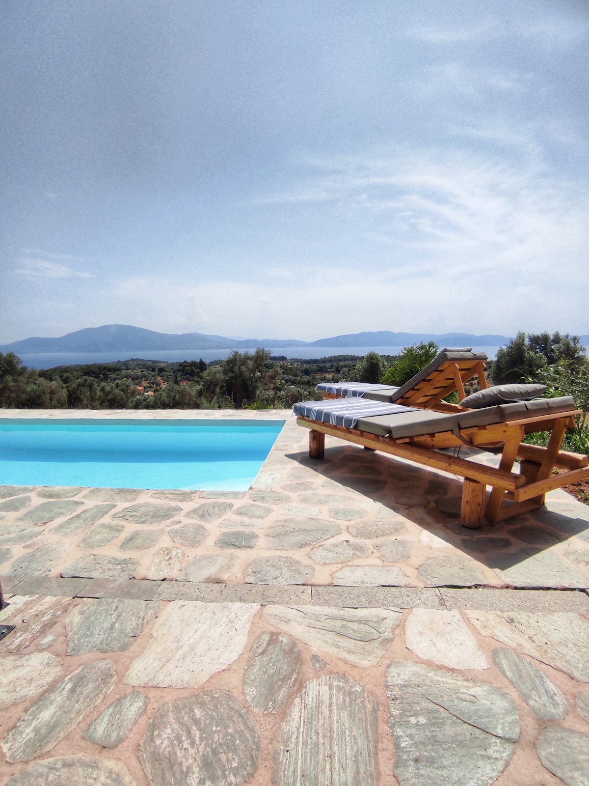 Ilus ja eriline kivimaja, mis on tehtud hoolega suure armastusega täielikult vundamendi põhjal looduslikest materjalidest, nagu kivi ja puit. See asub Nerotrivia küla lähedal asuvas rohelises piirkonnas, kust avanevad piiramatud ja takistusteta vaated Eviani lahele ja Kantilio mäele, mis sobivad ideaalselt lõõgastumiseks ja rahustamiseks. Samuti lõime samas talus teise maja, kus on bassein ja piiramatu vaade sama filosoofia merele, mis on täieliku privaatsuse tagamiseks kivimüüriga eraldatud.