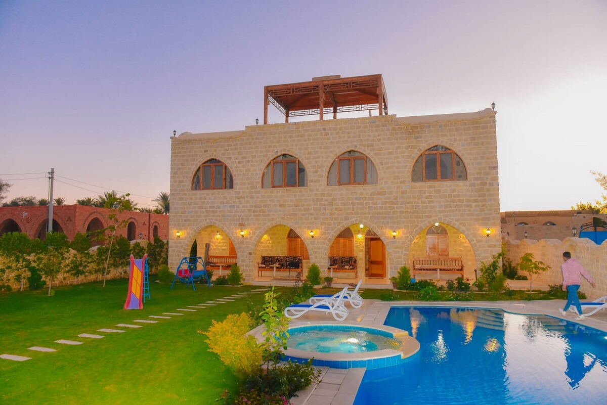 Maamaja asub Tunise külas Fayoumis, Tunis Village 'i kesklinna lähedal. Sellel on - 7 magamistuba: 3 esimesel korrusel (2 tuba kaheinimesevoodiga, 1 kaheinimesevoodiga) -4 teisel korrusel (2 tuba kaheinimesevoodiga, 1 kaheinimesevoodiga) - Köök kõigi tööriistadega (kausid, söögipulgad, taldrikud, tassid, ahi, külmik jne) -7 vannituba igas toas, kus on oma vannituba. - Privaatne bassein . - Privaatne aed suure välisukse alaga. ١٠٠٣٧٧٠١٦٢