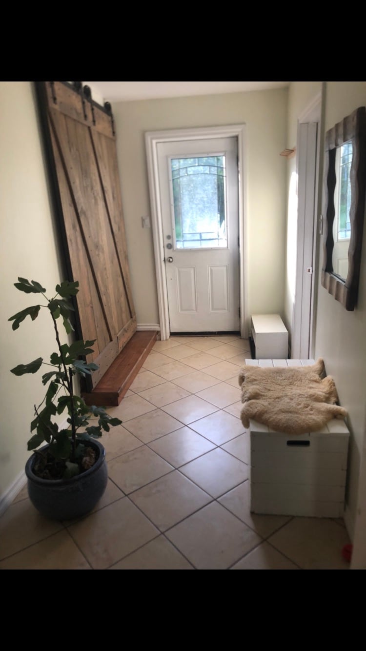 The entrance is private and will lead to the large master bedroom as well as bathroom with laundry facilities. There is no kitchen in the unit but there is everything you need to make tea and coffee as well as a microwave and minifridge. Sliding doors in the master bedroom lead to a deck to enjoy or a BBQ to use. At 70 steps, it’s a bit of a trek to the dock, but once there, you can make use of the paddle board or kayak. Winter tires or all wheel drive highly recommended in winter!
