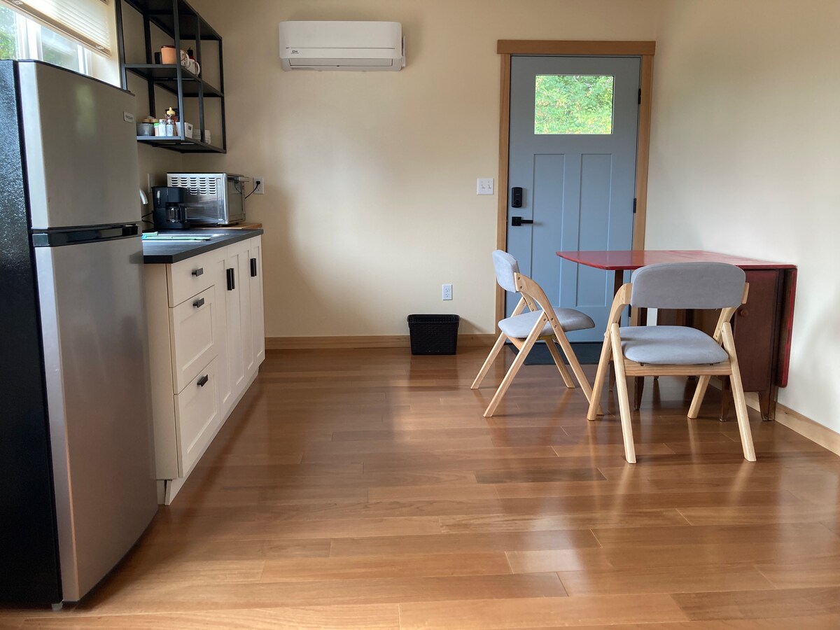 Our Hideaway studio is a cozy studio suite located within walking distance of downtown Salem, the state Capitol, and Willamette University. The Hideaway has total privacy, with your own entrance, full bathroom, kitchenette, and washer & dryer. Our neighborhood is close enough to downtown to enjoy walking to local restaurants, shops, Riverfront Park, and more. The I-5 freeway is a 5-minute drive from our home, making it easy to get to neighboring cities. *See winter/spring 2026 note in property*