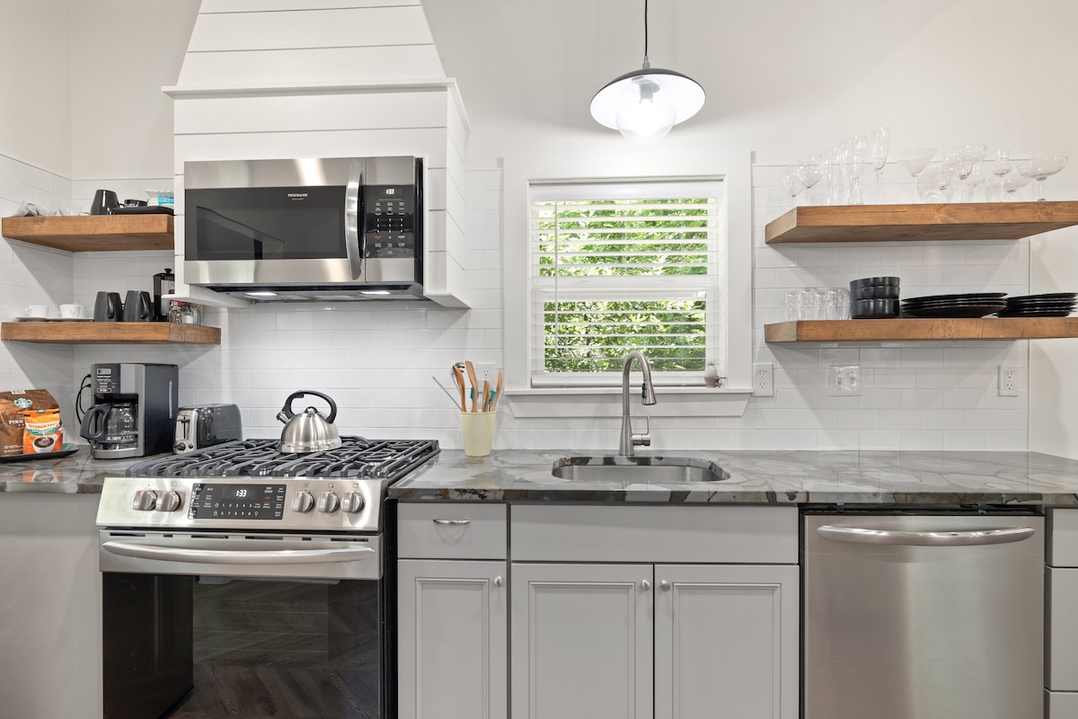 Tere tulemast meie võluvasse hubasesse majakesse, värskelt renoveeritud 2 magamistoaga puhkepaika, mis asub vaikses naabruskonnas vaid mõne minuti kaugusel Fayetteville'i kesklinnast, Arkansase ülikoolist ja Ozarksi südamest. Selles hubases 48 ruutmeetrise pindalaga majutuskohas on ühendatud kaasaegne mugavus ja Fayetteville'i klassikaline võlu – lehtpuidust põrandad, läbimõeldud disain ja kutsuvad välialad. Lõõgastu esiterrassil või lõõgastu tagaterrassil nöörvalgustite all tuleaseme ja oja kõrval, oma privaatses aiaga ümbritsetud peidupaigas linna südames.