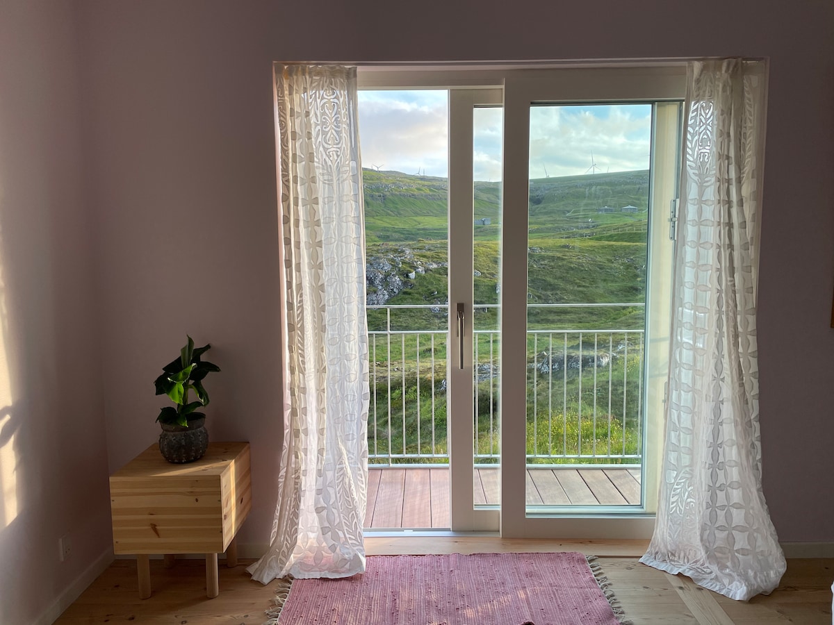 Kui otsid vaikust ja lõõgastust, siis vaata seda. Väike võluv ridaelamu, kust avaneb hingeline ja rabavad vaated Sørvágsi fjordile Mykinesesse hingematvate päikeseloojangutega. Mõne minuti jalutuskäigu kaugusel poodidest, lennujaamast ja ilusatest vaatamisväärsustest kas jalgsi või bussiga, mis peatub mõne minuti kaugusel majast.