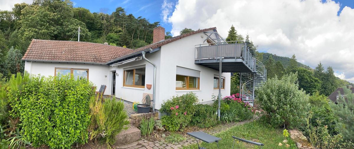 Meie puhkemaja Burrweileris asub Pfalzi metsa ääres lõunapoolsel veinimarsruudil Teufelsbergil, 355 m kõrgusel St. Anna kabeli all. 1250 ruutmeetri suurusel tarastatud metsa kinnistul on vaateala, kust avaneb vaade Reini tasandikule, vanadest tammepükstest terrass ja piknikupink. Samuti saad broneerida meie „Forest House with Dream View“ Teufelsbergis ja meie „Rohelise puhkemaja“ Landau/Pfalzis selle portaali kaudu.