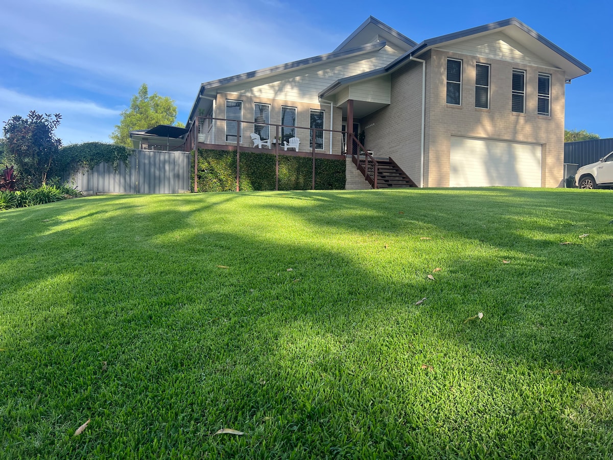 Ülemine korrus 2 magamistuba 30 min autosõidu kaugusel Port Macquarie kesklinnast, mis on varustatud suure külmiku, mikrolaineahju, teleri, pesumasina ja kuivatiga. Suur terrass suurepäraste vaadetega Camden Haven 'i jõele ja North Brother Mountainile, mida ümbritseb grill ja suur söögilaud. Auto varjualune parkimiseni. 3 km kaugusel Laurietoni linnaosast ja kaubanduskeskusest, 300 m paadirambist, paadilaenutusest ja poest. Turvas igasugustele paaditöödele, süvavee sildumisvõimalustele ja suurepärasele kalapüügile.