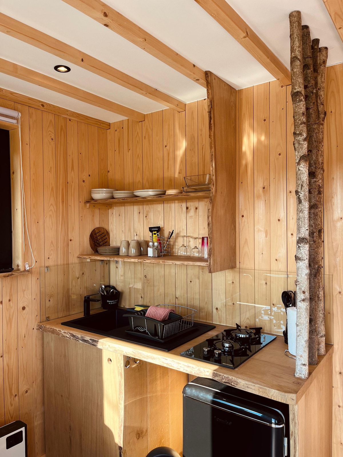 Tervita ja naudi oma peatumist meie majas puu otsas. Selle väikese puitmaja ehitas 2019. aastal täielikult selle omanik. Materjalid pärinevad lähedalasuvatest puudest ja on taaskasutatud. Talvel ja suvel saad laadida patareisid, hingata ja veeta öö rahus ja kõrguses... Kui ilm on hea, on terrassil grill.