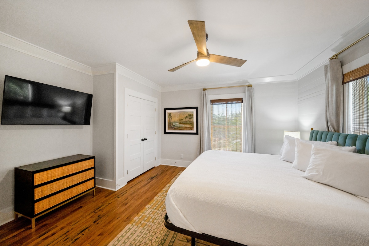 Sunshine's Sojourn at the Bowery Inn ühendab endas ajaloolise võlu ja kaasaegse mugavuse Apalachicola kesklinnas. Vaata oma toast kuldseid päikeseloojanguid, puhka rahulikult pehmes king-suuruses voodis või hubases kaheinimesevoodis ning püsi ühenduses tänu täielikule lauale ja usaldusväärsele WiFi-le. Ühisköök sobib ideaalselt kergete eine või hommikukohvi nautimiseks ning lai veranda kutsub pikaks ja laiskaks puhkuseks. Astudes välja, näed butiike, tunnustatud mereannirestorane, hooajalisi turge ja jõevaateid vaid mõne minuti kaugusel.