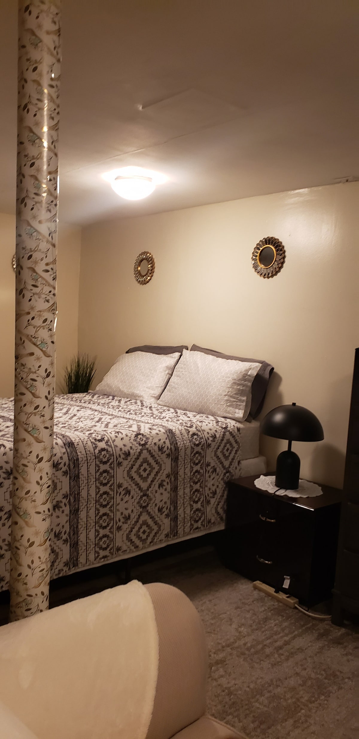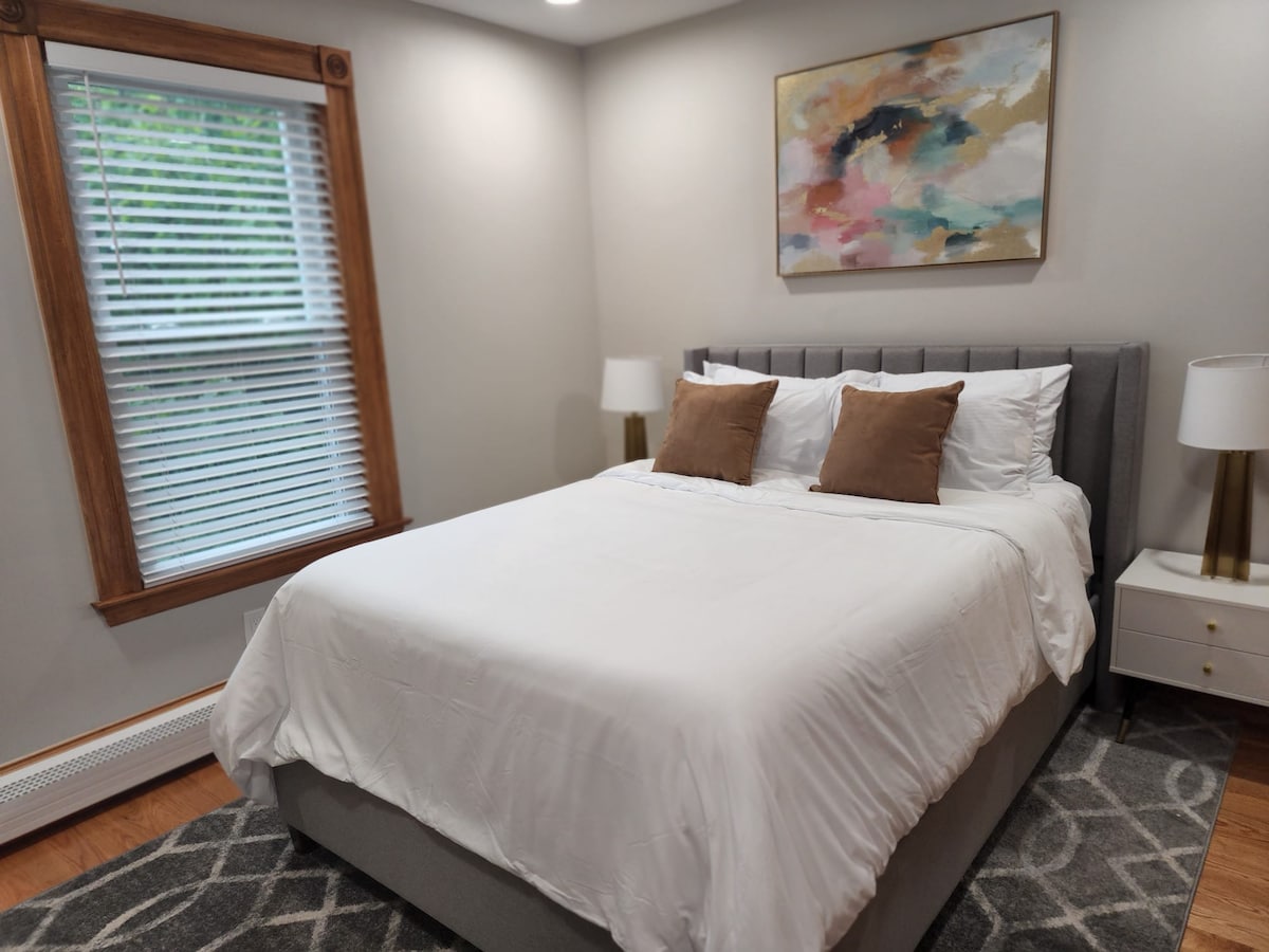 This is a 1st floor private unit nestled in a serene urban enclave. Conveniently surrounded by public transit, shops, and dining options within a 0.6-mile radius. Originally a charming Victorian abode, meticulously renovated in 2016 to seamlessly blend historic elegance with contemporary comforts. Revel in a fully-equipped kitchen, private rear porch, and a tranquil bedroom boasting a plush queen-size bed. Tailored for your short or extended stay needs, with central air for optimal comfort.