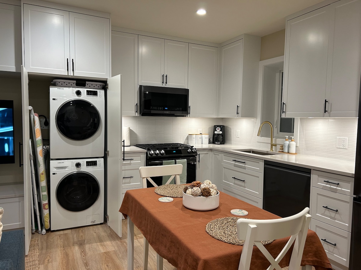 Põgene sellesse võluvasse kaasaegsesse talumaja inspireeritud majutuskohta, mis asub ilusas Langleys, BC-s. Meie hubane puhkepaik on ideaalne koht, mida oma peatumise ajal koduks nimetada, ning seal on täielikult varustatud köök, pesuruumid, vannituba, mugav kaheinimesevoodi ja väljatõmmatav diivan. Majutuskohas on palju loomulikku valgust ja hubane sisustus. Olenemata sellest, kas soovid valmistada maitsvat einet või lihtsalt lõõgastuda ja lõõgastuda, on meie majutuskohas kõik, mida vajad, et oma peatumist maksimaalselt ära kasutada.