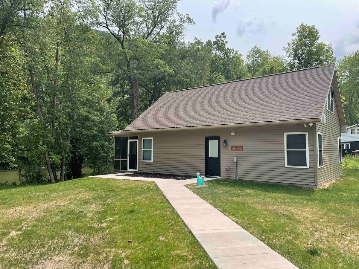 Uus konteinermaja! Pargi oma sõiduk, istu oma UTV-sse ja suundu mööda hästi hoitud rada uude konteinermaja, mis asub jõe kaldal kalju otsas! Oma privaatse jooksva veega saunamaja, kuuma veega duši ja WC-potiga! Ideaalne romantiline puhkus või suurepärane viis looduse nautimiseks! Talv on käes! Hoia end soojas kütte ja elektrilise kamina ning mullivanni, kuuma duši ja köetava saunaga, mis on konteinerist 50 jala kaugusel! Vaata loodust parimates kohtades!