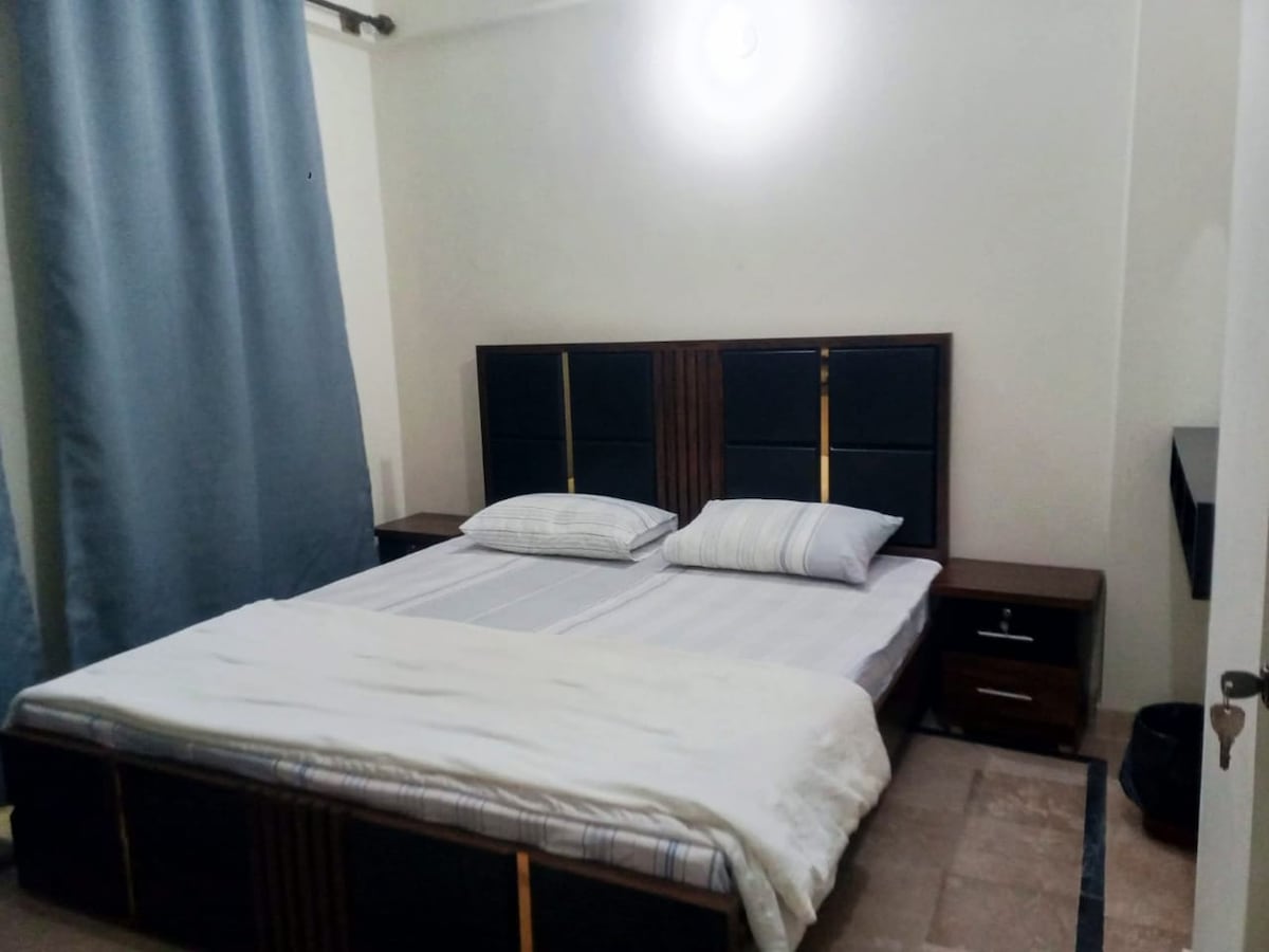 Kaasaegne korter Shaheed e Millat Roadil ja Khalid Bin Walid Roadil, Karachi City südames. Naudi tipptasemel mugavusi: 2 kliimaseadet, pliit, külmik, mikrolaineahi, sügavkülmik, 2 madratsit, diivanit. Söögilaud. 2 avarat magamistuba koos vannitubadega ja juurdepääs rõdule. Võitmatu asukoht! Ainult Shaheed e Millat & Khalid Bin Walid Road Corneris asuv majutuskoht. 2 min jalutuskäigu kaugusel asuvad ruumid: haigla, üldpood, apteek, pesumaja, salong, luksusrestoranid, ökonoomne kiirtoit ja hiina keel, Chai hotell.