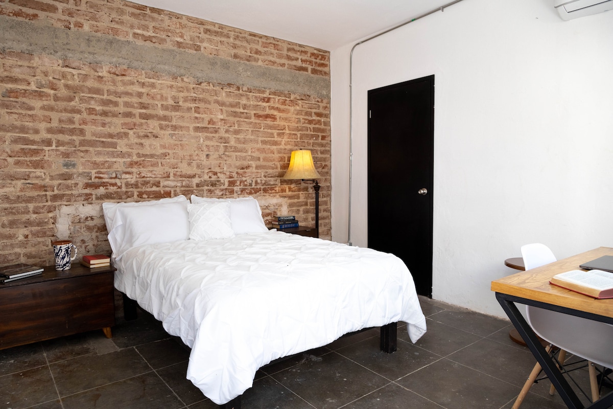 Korter kööginurga, laua, üheinimesevoodi, kohvimasin, vannituba, internet, soe vesi, jahutus, nutiteler, mikrolaineahi, külmik. See asub väga turvalises ja keskses piirkonnas linnas, väga lähedal Sonora Ülikoolile, ostlemispiirkondadele, restoranidele, ärikeskustele, supermarketitele, seal on ka pesuruum.