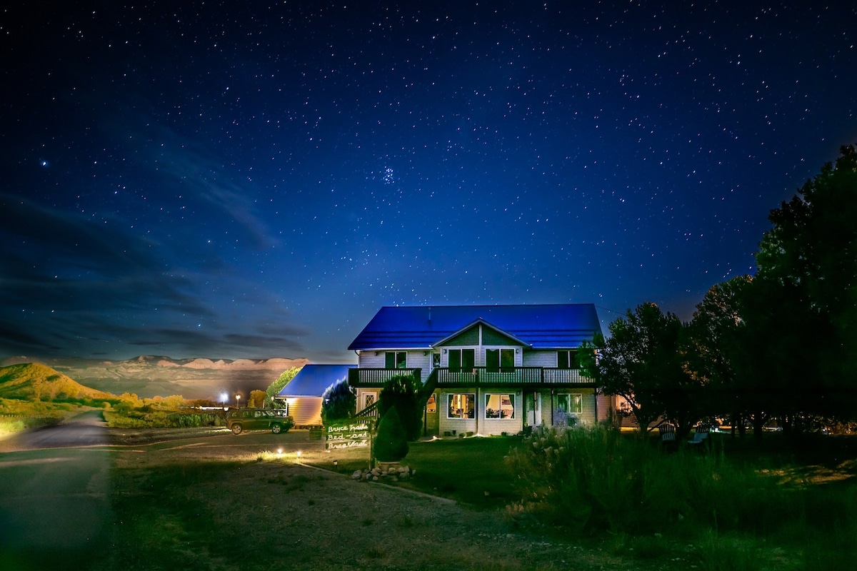 Traditsiooniline kodumajutus (B&B) nelja eraldi vannitoaga vaikses ja omapärases keskkonnas, mis asutati 1999. aastal. Majutaja on kohapeal, et sind sisse registreerida, pakkuda teavet söögikohtade ja tegevuste kohta, mida nautida. Sooja hommikusööki serveeritakse ajavahemikus 7.30-9.00. Jaga meie kogunemisruumis, kus on piljardilaud, televiisor, mikrolaineahi, tee ja kuum šokolaad, või naudi väljas terrassil olemist, kust avanevad maalilised vaated. Meile meeldib kohtuda uute inimestega ja loodame muuta sinu reisi Escalantes nauditavaks ja mugavaks.