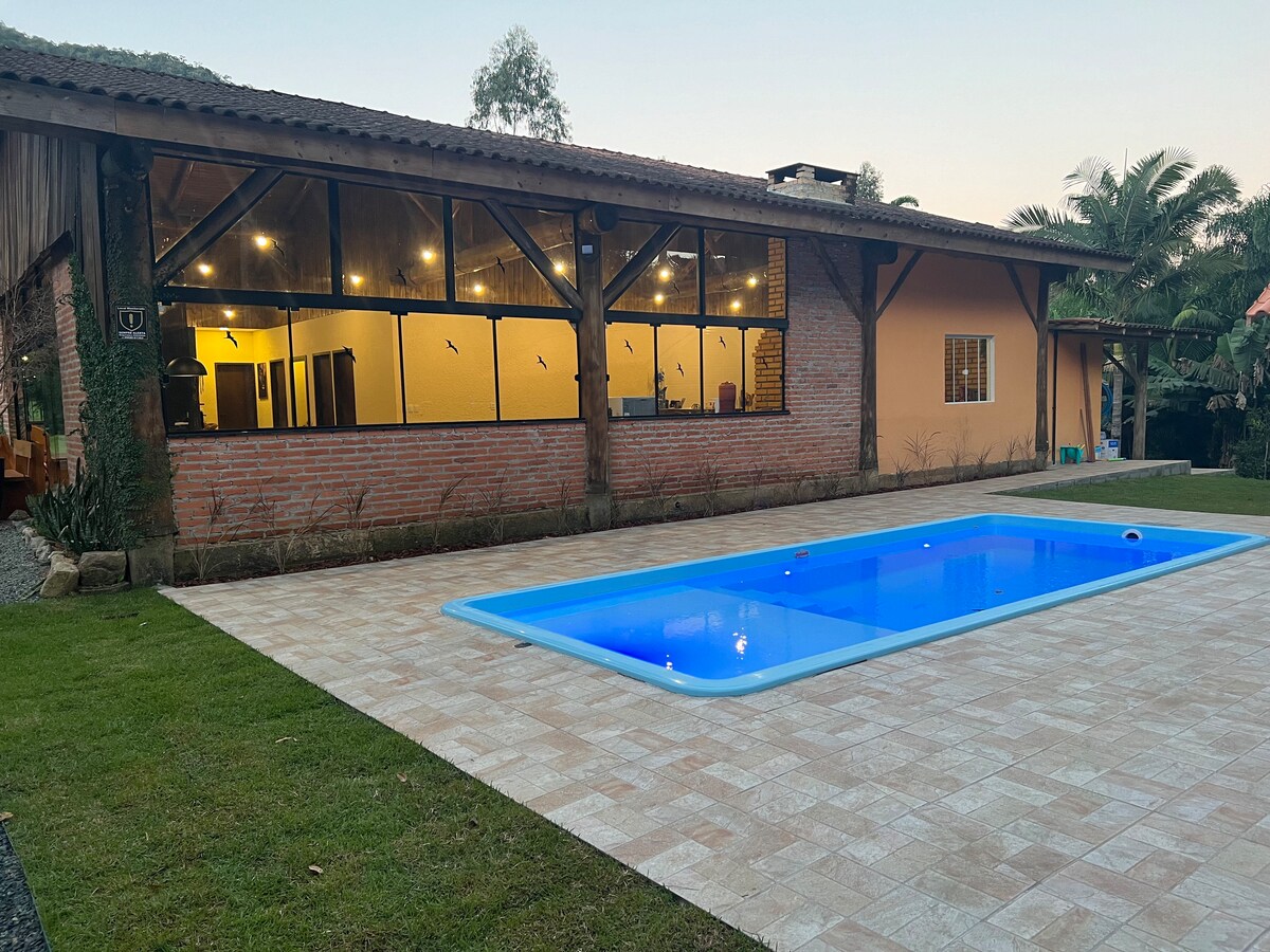 ESPAÇO PROJETADO PARA DESCANSO — NÃO É PERMITIDO FESTAS NEM RECEBER VISITAS. Ideal para quem busca tranquilidade e contato com a natureza, com capacidade máxima para até 8 pessoas. O imóvel conta com monitoramento por câmeras externas 24h, garantindo segurança. Localizado dentro do perímetro urbano de Garuva/SC, possui fundos para o Rio São João, acesso privativo e um riacho raso ao fundo, além de piscina aquecida.