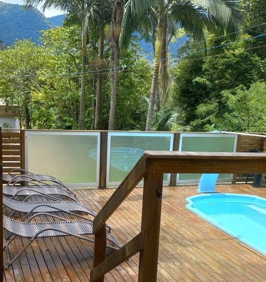 Tipptasemel puhkekoht Estrada Bonital, Joinville/SC. Moodne maja kamina, mullivanni, gurmeenurga ja järvevaatega. Täisvarustusega köök, pruulikoda, veinikelder, sise- ja väligrill, liivaväljak ja minimets. Mahutab mugavalt kuni 6 inimest. Rohkem kui kuuest külalisest koosnevatele rühmadele on saadaval külgnev mägisuvila – eraldi ruum rõdu ja privaatse grilliga, mis tagab veelgi suurema mugavuse ja privaatsuse. Lähedal asuvad kosked, restoranid ja kohvikud.