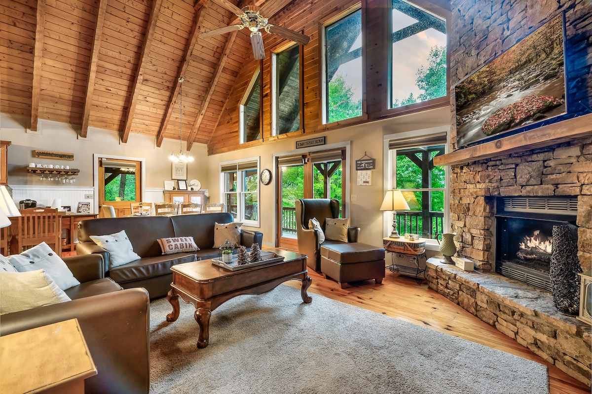 Koge võrreldamatut luksust majutuskohas Windows to the Mountains, mis on kaasaegne ime Gatlinburgis, kust avaneb võrratu vaade Mt-le. Leconte. Mägisuvilas on katuseterrass, väike bassein, kino ja muud suurepärased mugavused. Naudi täielikult varustatud kööki, hubast aurukaminaga elutuba ja spaa-laadse vannitoaga peasviiti. Kohvibaari, mängulaudade ja saunaga majutuskoht Windows to the Mountains pakub eksklusiivset puhkepaika nõudlikele külalistele, kes otsivad luksuslikku puhkepaika.