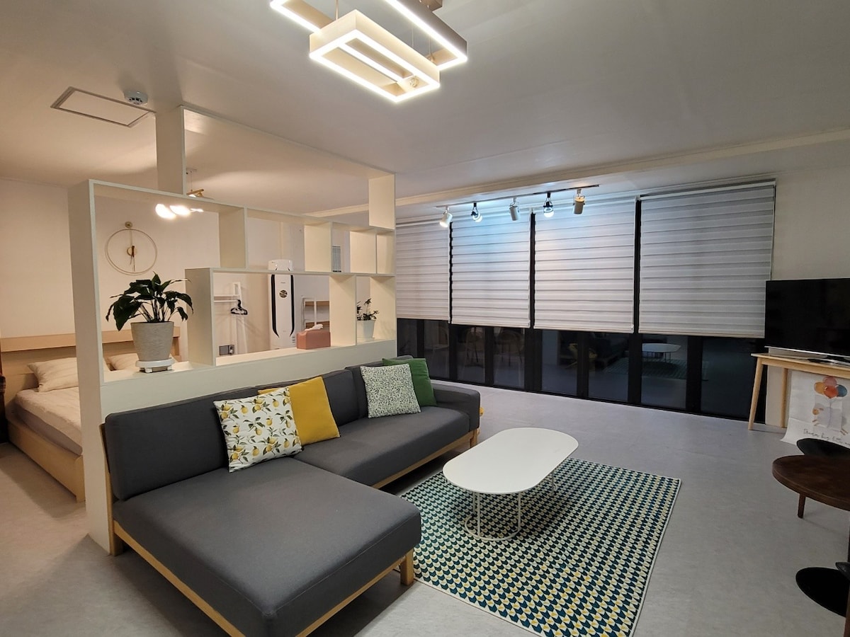 [Cozy Air Chuncheon] Standardne # Queen-size voodi # 4 tärni hotelli voodipesu # Nutikas teler # Chuncheoni raekoda 8 minutit