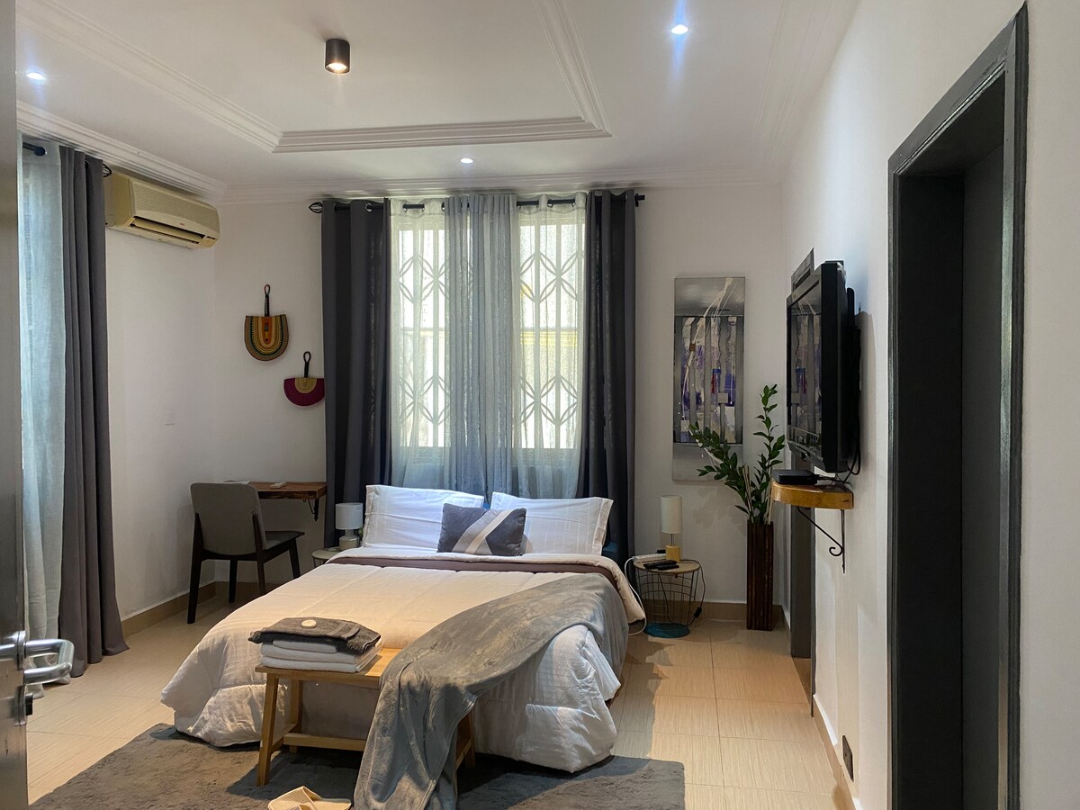 This unique place has a style all its own. A centrally located Modern Loft, well appointed with amenities that will make you feel right at home. Conveniently situated in East Airport Accra. The loft comes fully furnished with Air conditioning, New appliances, Wifi, Washer and a backup Generator will make your stay comfortable.