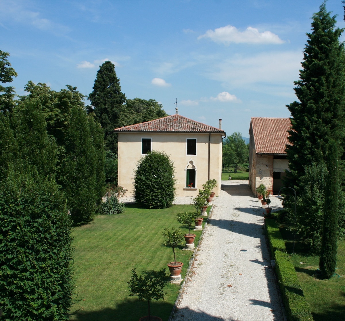 See väike iseseisev maamaja, mis on hiljuti renoveeritud kõrgeimate standarditega, asub Itaalia renascence villa 12 aakri suuruses maastikukujundusega aias, kus on 200 ruutmeetrit eluruumi, kus on grill, pitsaahi ja söögituba/eluruum. Külalistel on juurdepääs 12 aakri suurusele maastikukujundusega pargile ja tõeliselt tähelepanuväärsele 100 ruutmeetri suurusele soojendusega basseinile, mis asub oliivipuuaias. Asukoht on 45-minutilise autosõidu kaugusel nii Padovast kui ka Veronast ja ühe tunni autosõidu kaugusel Veneetsiast.