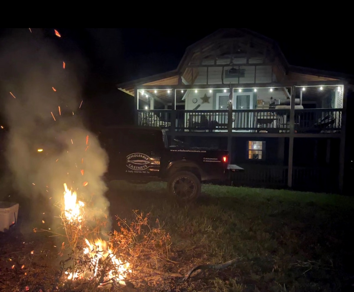Nestled in Branford, FL, along the scenic Suwannee River in Hatch Bend, this pet friendly, three-bedroom, three-bath lodge is perfect for weekends or extended stays. Upstairs features two king bedrooms with ensuite baths, a cozy living area with a gas fireplace, and a fully equipped modern kitchen. Downstairs offers a king bedroom, full bath, kitchenette, and living space. An enclosed elevator makes transporting gear easy. Experience comfort, charm, and Suwannee River beauty at our retreat!