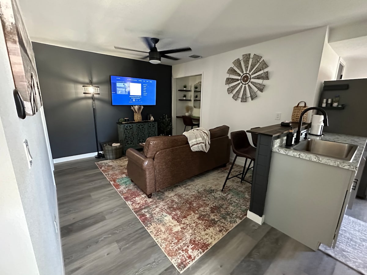 Siin on KOKKUVÕTE: - KIIRE SÕIT MAIN ST-SSE - 2 parkimiskohta OTSE VÄLJAS - Sleepy time = Chill time - Magamistuba KING Serta i-Series madratsiga ja 55-tollise teleriga - Avar elu 4K 70-tollise teleri, ATARI konsooli ja King-tõmbega - Logi sisse OMA voogedastusteenustesse! - Grassy Indoor Nook koos võrkkiigega (lõõgastu!) - 2 privaatset terrassiruumi (jah, kaks!) koos GAASIKAMBRIGA - Noolelaud ja mängud - PUUVILLANE VOODIPESU - UUS ühekorruseline korter - VARUSTATUD KÖÖK - Söögi- ja bistroolaud, kahekordne kontor ja saar!