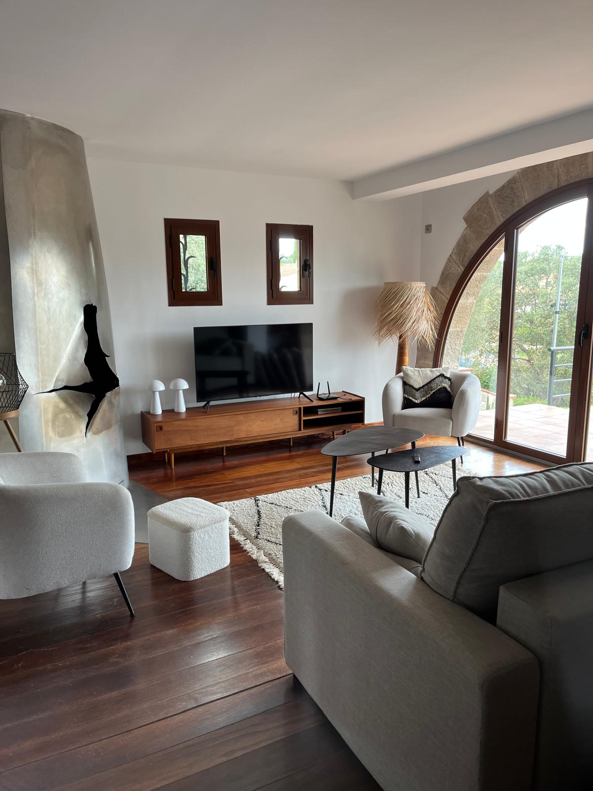 Capacidad para 10 personas. Suite principal con aseo y despacho propios. Suite secundaria con aseo. Tres habitaciones dobles. Dos aseos en zonas comunes. Total 5 habitaciones y 4 baños completos con ducha. Cocina completa con lavaplatos y sala de estar espaciosa en planta baja. Segunda sala de estar en la primera planta. A/C en todas las zonas Porche con BBQ, piscina y lavaplatos exterior. Está ubicada a 15 minutos del centro de Girona y 30 minutos de la playa más cercana (l'Escala, Begur...)