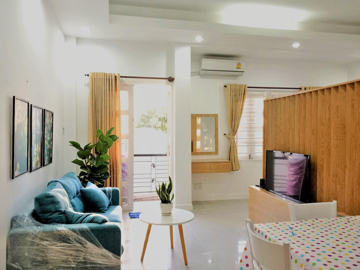 Korter tiheda tänavavaatega päeval ja rahulik öösel, 2 km kaugusel lennujaamast, 9 minuti kaugusel lennujaamast, otse rohelise keskpargi kõrval. Õhtuti saad minna parki jalutama ja nautima Vietnami tänavatoitu. Tetiga piirnevatel päevadel muudab siin toimuv lilleturg atmosfääri kihavaks ja värviliseks. Interjööris on lamamistoolid, lahedad välialad, kus on ööpäevaringne valve. See on turvaline, rahulik ja värske.