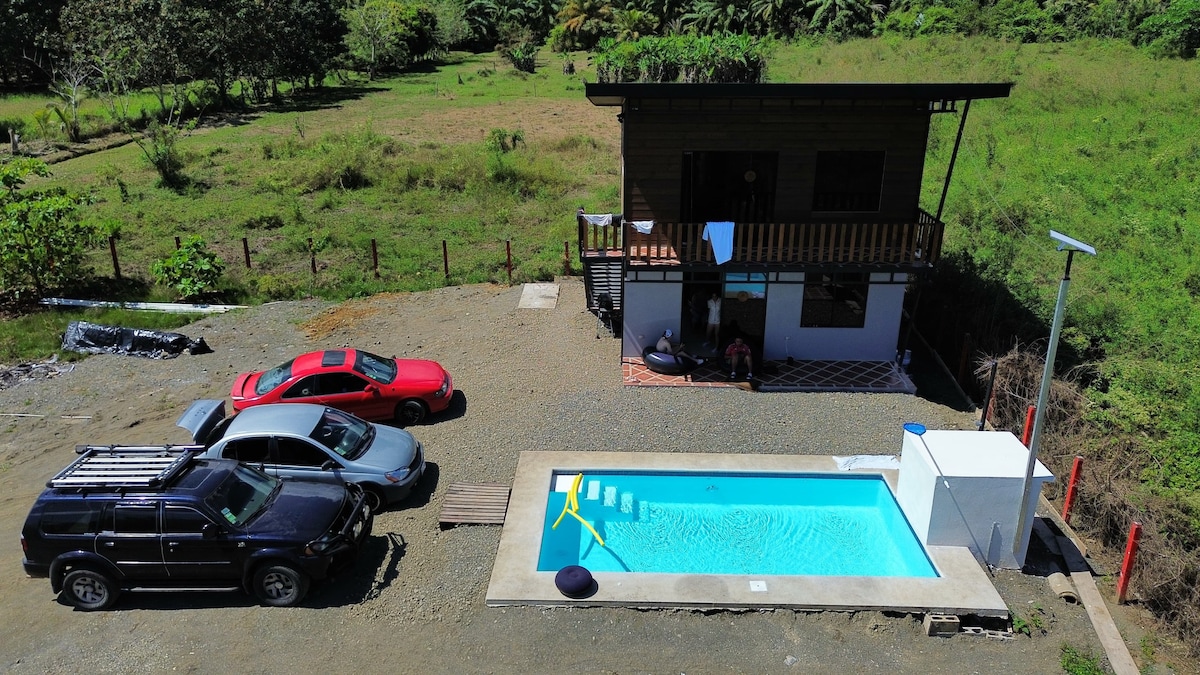 Kaasaegne villa Pavones 'i kesklinnas, kus on privaatne juurdepääs ja bassein väliduši ja aiaga. Õues asuv elutuba istumis- ja söögitoaga. Avar magamistuba suure voodi ja kapiga surfivarustuse jaoks. Täielik vannituba dušiga. Köögi-elutuba, kus on kaks kabriolettdiivanit, nutiteler, kliimaseade ja kiire wifi. Asub kuulsa Pavones 'i laine kõrval. Sellel on kaks sissepääsu: parklasse ja otse randa/jõeni.