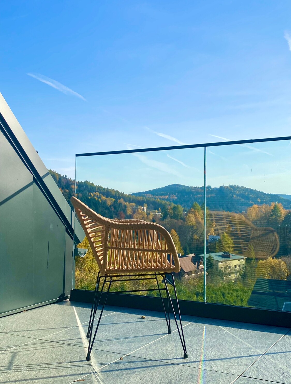 Apartament Szmaragdowy dzięki lokalizacji na drugim piętrze oferuje zachwycający widok. W sezonie letnim pozwala się nim cieszyć wyjście na balkon, natomiast w sezonie zimowym panoramiczne okna umożliwiają podziwianie krajobrazu. Czteroosobowe studio jest oazą wyciszenia i relaksu, dzięki gustownym dodatkom w głębokim, szmaragdowym kolorze. Do spania przygotowano duże łóżko i rozkładana, dwuosobowa sofa.