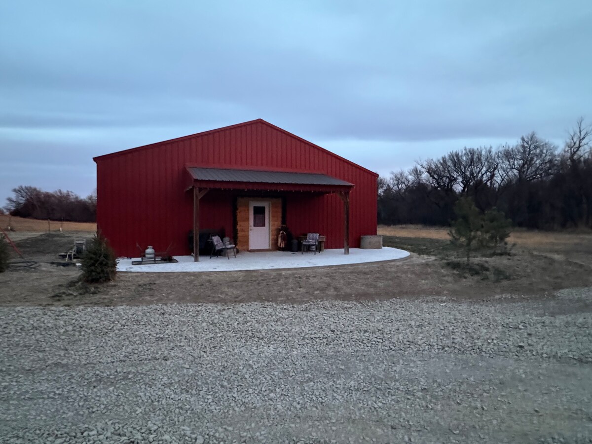 This is a hunter’s oasis & a great space for family gatherings. The Lodge is located in the rolling hills of Graham County. The lodge offers a scenic location where you can enjoy coffee on the patio & observe wild turkeys strolling by. The farm's diverse wildlife including deer, pheasants, & doves. In the evening, unwind on the patio, listening to the distant howls of coyotes as you take in the breathtaking sunsets. Gather around the fire pit to make s'mores while stargazing.