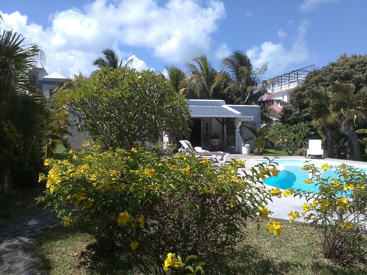Umbes 4000m ² suuruses suures aias asub 3 magamistoaga puhkekoht, kust avaneb suurepärane vaade mägedele, mägedele ja suhkruroopõldudele. Varustatud kaetud terrassiga, tahaksid seal istuda ja varahommikul troopiliste lindude lauludes hommikust süüa. Öösiti, tihedast piirkonnast eemal, meelitavad sind tähed, kui lonksad rohelist teed ja seedid saarel elanud sündmusterohkeid päevi.