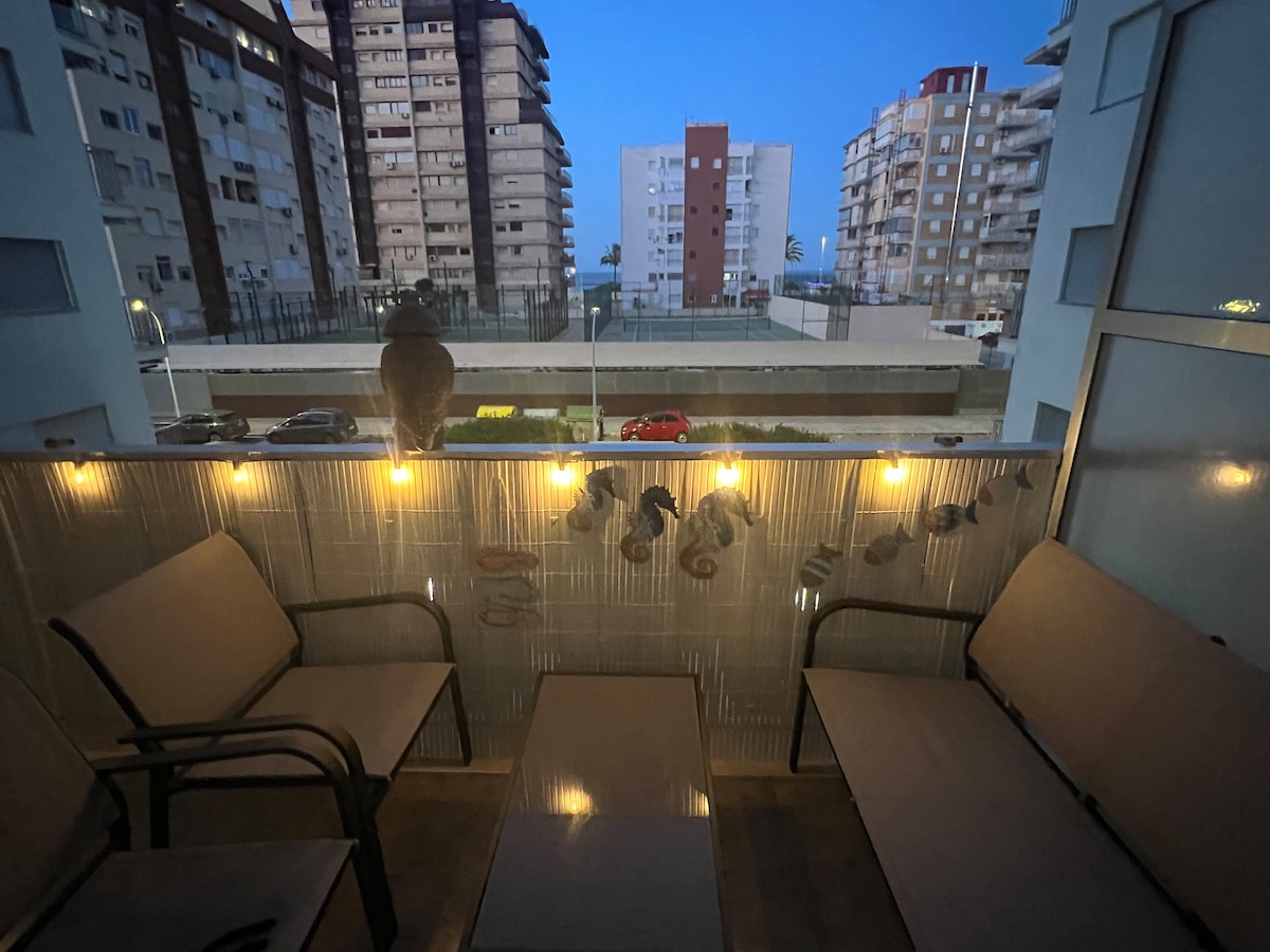 Sinu täiuslik ookeaniäärne oaas! Rannakorter Gandías, otsese ja privaatse sissepääsuga. Ideaalne peredele, mahutab 6 inimest. Selles on 3 magamistuba, 2 vannituba dušiga, varustatud köök, avar elutuba, nutikas teler ja wifi. Imeline terrass vaatega merele, kus saad nautida ainulaadseid ja unustamatuid hetki. Vähem kui 100 meetri kaugusel on restoranid, supermarketid ja kõik mugavused mugavaks ja täielikuks peatumiseks.
