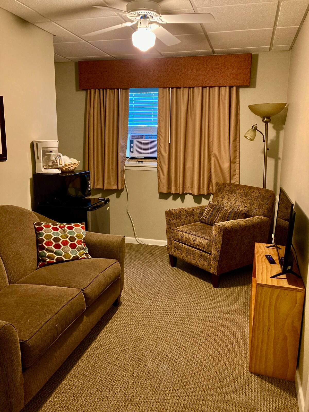 See üksus koosneb kahest eraldi toast, mis on külgnevad, kuid MITTE külgnevad. Tuba 220 on magamistuba, kus on lai kaheinimesevoodi, voogedastusega teler, kliimaseade, minikülmik, kohvimasin ja ühendatud privaatne vannituba. Toas 221, otse kõrval, on kaheinimesevoodi, voogedastusega teler ja kliimaseade. Selles seadistuses töötab ideaalselt 2-4 reisijast koosnev rühm, kus on privaatne vannituba toas 220. Või tuba 221 saab kasutada koridori lõpus asuvaid jagatud vannituba. Tasuta hommikusöögiks suupisted hinna sees. Ei sobi lastele.