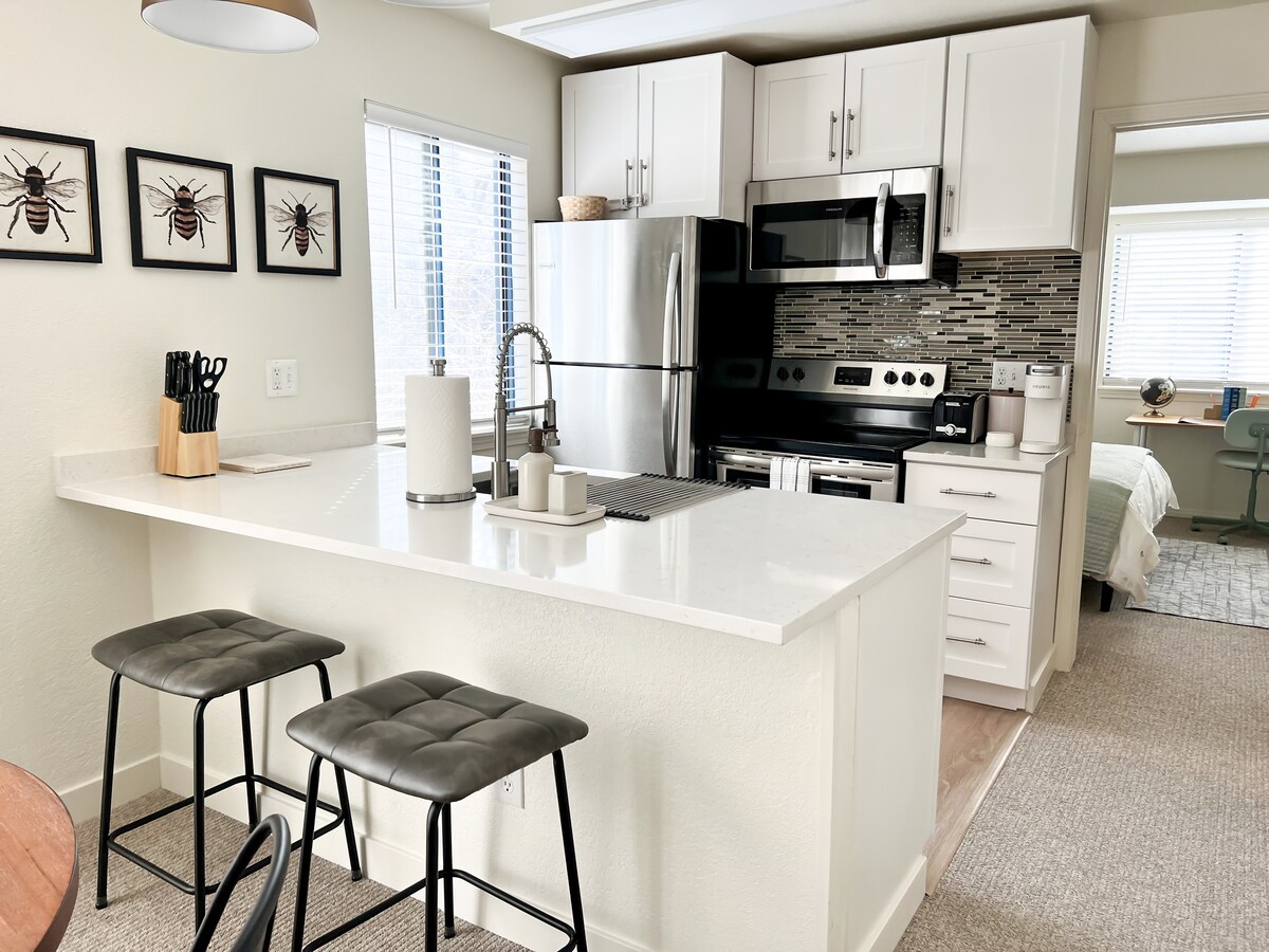 1 magamistoaga loft täis kööginurgaga. DTC lähedal ja vaid mõne minuti kaugusel kergraudteest, juurdepääs I-25-le ja kõigele, mida Denver pakub. See on ideaalne koht puhkamiseks pärast rasket töö- või reisipäeva. Meie loftis on lai kaheinimesevoodi, väike kööginurk külmikuga, mikrolaineahi, elektripliit põhiliseks toiduvalmistamiseks ning tasuta kohv ja tee. Täisvann, kaablitega teler, juurdepääs kogukonna jõusaalile ja basseinile (hooajaline: bassein on avatud mälestuspäeva ja tööpüha vahel) Tasuta parkimine